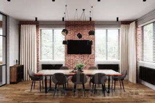 Есть полный дизайн-проект (фото прилагаются). Планировка всех 3-х этажей также представлена в галерее фотографий.