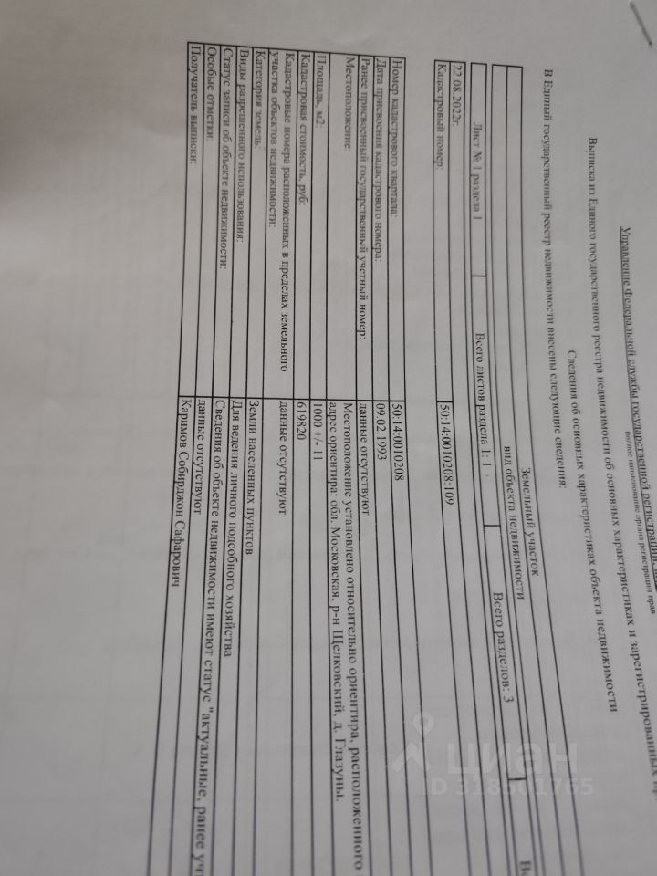 Кадастровый номер участка 50:14:0010208:*** указал продавец