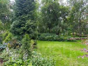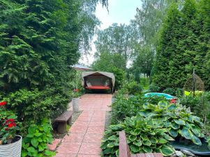 Территория участка благоустроена, по периметру высажены многолетние цветы и кустарники, мангальную зону окружают шестиметровые туи, дорожки выложены плиткой. На участке также расположены три технических домика и большая летняя закрытая беседка, которая может использоваться для комфортного проживания в теплое время года. В шаговой доступности находится продуктовый магазин и остановка общественного транспорта.