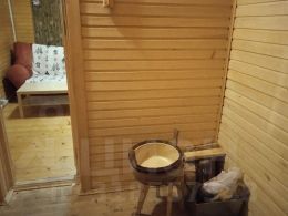 -На 1м этаже: коридор, санузел раздельный, предбанник с душевой кабиной, Баня с печью на дровах, кухня, гостиная.