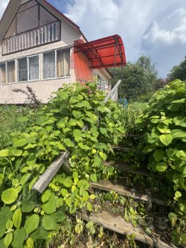Участок двухуровневый, огорожен, здесь въездная группа с электрическими откатными воротами, 2 теплицы, мангальная зона, летний душ.
