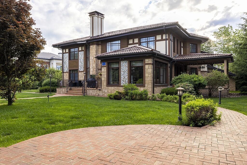 Особняк окружён ухоженным и красивым садом, в сердце которого создана лаунж-зона. Территория находится под видеонаблюдением. В ближайшем окружении резиденции много приватного пространства. Дом окружён соседями только с двух сторон, расположен на просторном участке площадью 23 сотки.