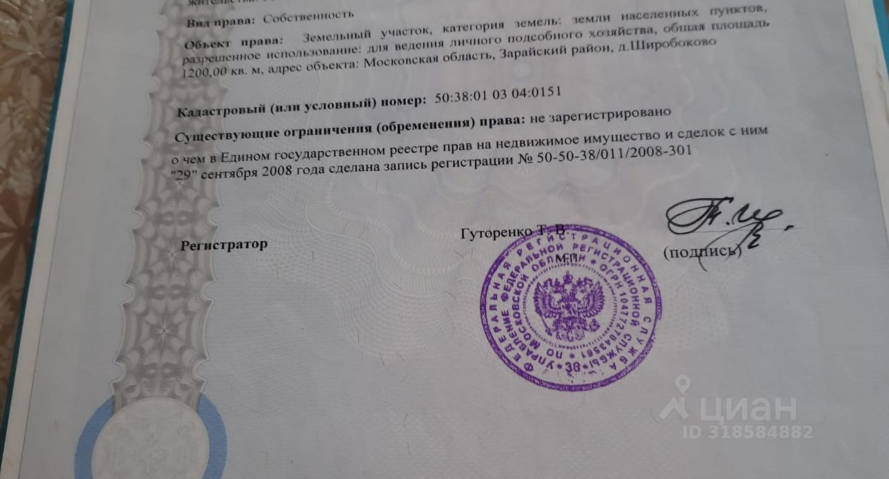 Кадастровый номер участка 50:38:0010304:*** указал продавец