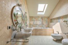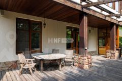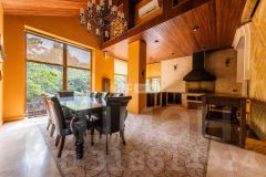 Коттедж в стиле Шале и интерьером Ар-деко, сочетающем в себе строгость и функциональность, выполнен из дорогих материалов. В доме настенные панно сделаны из натурального оникса, а в SPA-зоне из зеленого пакистанского оникса. Шикарный бассейн с длиной дорожки 22,5 метра, противотоком, акварелаксом и водопадом. Мебель от ведущих производителей Италии, кухня Francesco Molon (Италия), двери и арки из массива ангарской сосны. В доме 6 спален, холл, кухня-столовая, каминный зал и зона отдыха с аквариумом, зимний сад с BBQ, SPA-зона, игровая комната и кабинет. Установлена система теплых полов под всем плиточным покрытием. Домашний кинотеатр, интегрированная музыкальная система, установлен оптический и спутниковый интернет, двойной wi-fi. Установлены две системы вентиляции, одна с рекуператором. Промышленные кондиционеры почти во всех комнатах.