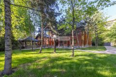 Элегантный загородный дом площадью 637 кв.м в коттеджном поселке Художников. Участок 28 соток расположен в 1 км от МКАД по Ленинградскому шоссе. Фасад дома облицован красным клинкерным кирпичом с декоративными вставками из серого камня, а в интерьере преобладают светлые молочные и бежевые оттенки в сочетании с натуральным деревом. Планировка дома включает просторную гостиную с камином, кухню-столовую, несколько спален и зону SPA с бассейном. В контуре здания предусмотрен гараж на 1 автомобиль. Интерьер выполнен в спокойной цветовой гамме, подчеркивающей уют и элегантность пространства. На лесном участке выполнен ландшафтный дизайн, проложены вымощенные дорожки, установлена крытая беседка с зоной барбекю. Сочетание естественного лесного окружения и благоустроенного двора создаёт атмосферу уединения и гармонии с природой. Поселок, основанный в 1923 году, является памятником градостроительства и примером малоэтажной элитной застройки. Развитая инфраструктура включает магазины, рестораны, развлекательные и спортивные комплексы, а дорога до Кремля занимает всего 20 минут. Шаговая доступности от станций метро Сокол и Октябрьское поле.