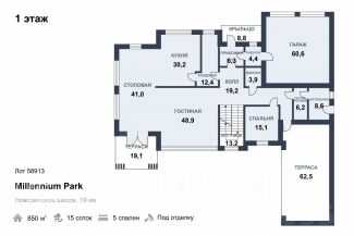 Лот 58913. Дом под отделку 850 кв.м. на участке 15.00 соток. Количество спален: 5.