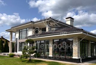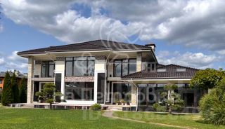 Новый коттедж с 5-мя спальнями, общей площадью :669,5 м.², расположен на участке 16,5 сотки в экологически чистом районе Подмосковья.