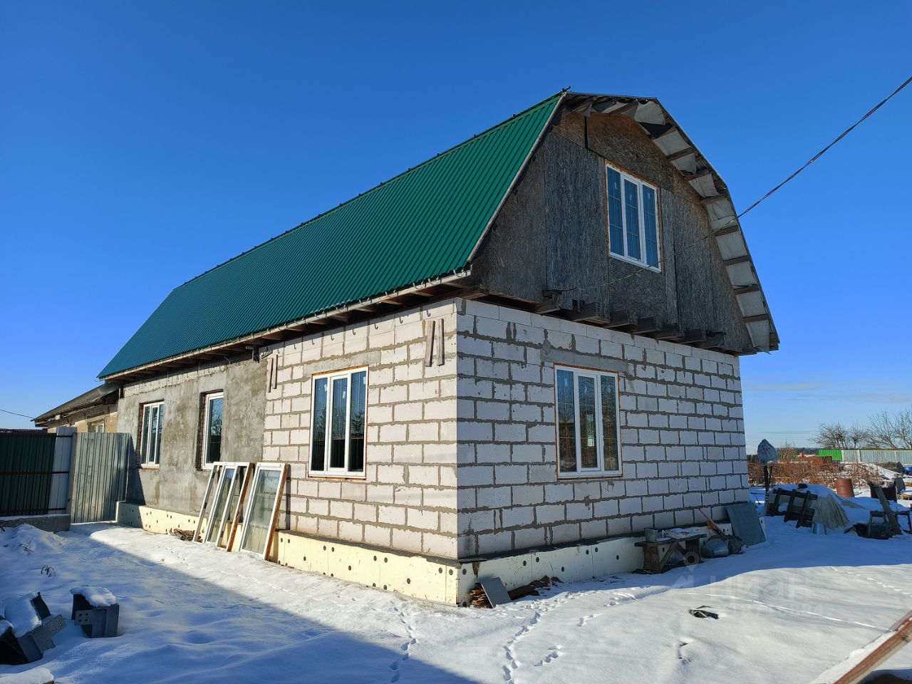 Кирпичный дуплекс (отдельный дом, объединенный с соседями только общей стеной, что существенно экономит площадь участка)был реконструирован в современный коттедж/дом ИЖС. Полностью заменен пол, залит новый фундамент, произведено усиление фундамента , сделан армированный бетонный пояс, отмостка, укрепление фундамента бетоном. Стены все идеально выровнены, некоторые перестроены заново. Крыша, стропила, металлоперекрытия -новые. Новые дорогие стеклопакеты. Одна комната уже жилая. На первом этаже: 2 спальни по 12 м (или спальня и кабинет), коридор, туалет , ванна, кухня 10 кв м , огромный зал - гостиная с панорамными окнами с выходом и видом на сад На втором этаже: коридор с тремя большими окнами с выходом на балкон с невероятными видами на закат. Можно предусмотреть свою планировку. Есть септик- система перелива из трех колодцев, включая первый бетонированный. Вода - колодец. 30 колец. Есть возможность (и сделан проект) завести в дом центральное водоснабжение. Электричество - 15 в. Газ уже подведён к участку, осталось завести его в дом. Забор стоит на бетонно-армированном поясе. Ворота откатные. Подъезд/заезд с двух сторон участка. Удачное расположение как самого участка- круглогодичный подъезд по асфальту, так и дома на участке, благодаря чему сад выглядит очень большим и по нему, реально, можно долго гулять. Участок ровный, сухой, без застоя воды, почва плодородная, водопроницаемая, многократно вносились как органические, так и минеральные удобрения, биогумус, компост, песок. Все отлично растет, даже томаты ведрами снимаем в открытом грунте. Доброжелательные соседи. Выход на огромное поле, невероятные виды истинно русской красоты Подмосковья: поля, леса, водоемы. Из построек: 2 туалета, сарай, фундамент под баню, каркас летнего душа. Расположение участка идеальное-без шума, без каких-либо аэропортов или вредных производств. Рядом огромное озеро (5 минут ходьбы) с оборудованным муниципальным пляжем , дежурит спасатель МЧС. Строили для себя, но обстоятельства изменились. Самое сложное в реконструкции дома уже сделано и построено, осталась чистовая отделка и заведение газа в дом, что обойдётся гораздо дешевле, чем покупка дома аналогичного метража из аналогичных материалов. Многие люди не доверяют домам, построенным чужими руками: здесь вы все видите сами и достраиваете сами, причем без заказа тяжелой дорогостоящей техники. Кроме того, при желании размер и форма участка позволяют построить еще один, или более, отдельно стоящие дома. Стены дома толщиной в 4 кирпича, шириной 50 см. Никаких мышей и паразитов, в пол вмонтирован теплый пол.