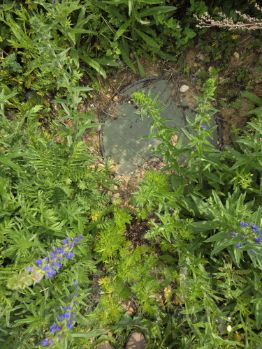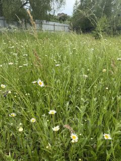- По границе участка проходит общий забор, за которым раскинулась красивая поляна, а за ней — живописный овраг