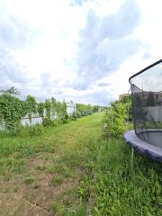 Просторный коридор с вместительным шкафом-купе и обувницей; спальня с раскладным диваном "Честер" и вместительным шкафом-купе; санузел с душевой кабиной; просторная кухня-гостиная с выходом на обустроенную террасу: две шестиметровые грядки (много клубники, земляники, черная и красная смородина, ремонтантная малина, крыжовник, яблоня "Мельба", голубика, цветы многолетние: розы, гвоздики, гортензия), зона для бассейна, игровая зона с большим батутом и песочницей. Есть небольшое подсобное помещение для хранения садового инвентаря.