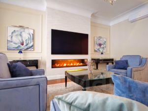 В доме выполнен дизайнерский ремонт с применением качественных материалов. Большое количество окон заполняет дом естественным светом. Дом полностью меблирован и оборудован необходимой техникой. Во всех комнатах имеются кондиционеры. На первом этаже расположена кухня- гостиная. В центре гостиной встроенный биокамин. Кухня укомплектована встроенной бытовой техникой , от немецкого производителя Neff. Варочная панель с функцией Защита от детей. Из кухни и гостиной есть выход на большую террасу. С террасы есть выход в задний дворик, где есть место для мангальной зоны. Также на первом этаже есть мини прачечная. С встроенными шкафами, мойкой. Стиральная и сушка от шведского производителя ASKO. На первом этаже есть 2 гардеробные и мини кладовая. Под лестницей. На втором этаже три спальни, одна для взрослых с гардеробной и приватным душем (мастер спальня), две другие для разнополых детей с отдельной ванной и санузлом. На третьем этаже спальня с гардеробной, душем и кабинет. Между ними холл с детской зоной. Встроенными шкафами. Во всех практически помещениях есть телевизоры. Дом в который можно просто зайти и комфортно жить.