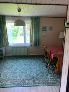 Всего 4 спальных комнаты, гостиная, кухня, прихожая, душ-туалет (бойлер), обшитая веранда, 2 кладовки и подвал.