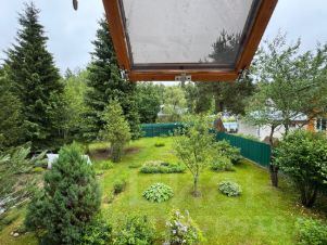 —участок ровный, сухой, правильной формы, огорожен забором по периметру, ворота, калитка. Помимо дачного дома на участке расположены: летняя кухня с подводкой воды, душевая с подогревом воды, туалет, хозяйственный блок для хранения инвентаря и садовой техники. Участок утопает в зелени, есть взрослые плодовые деревья (слива и яблоня) и кустарники ( смородина, ежевика, малина, крыжовник).