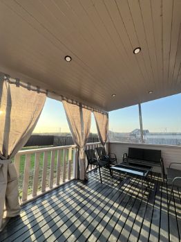 Дом выполнен по каркасной технологии и полностью готов к проживанию. Утеплитель 200 мм по всем стенам, полу и крыше позволяет проживать в доме круглогодично. Дом очень теплый и энергоэффективный.