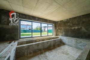 На первом этаже разведены коммуникации, залит теплый пол. Всего в доме 5 спален, одна из них расположена на первом этаже. Террасы с подогревом. Главным преимуществом планировки дома - наличие бассейна 4,5*8 метром, предусмотрен противоток. К дому пристроен гараж на три автомобиля. Оборудована котельная, установлено оборудование. Все центральные коммуникации: газоснабжение, электричество, водопровод, канализация.