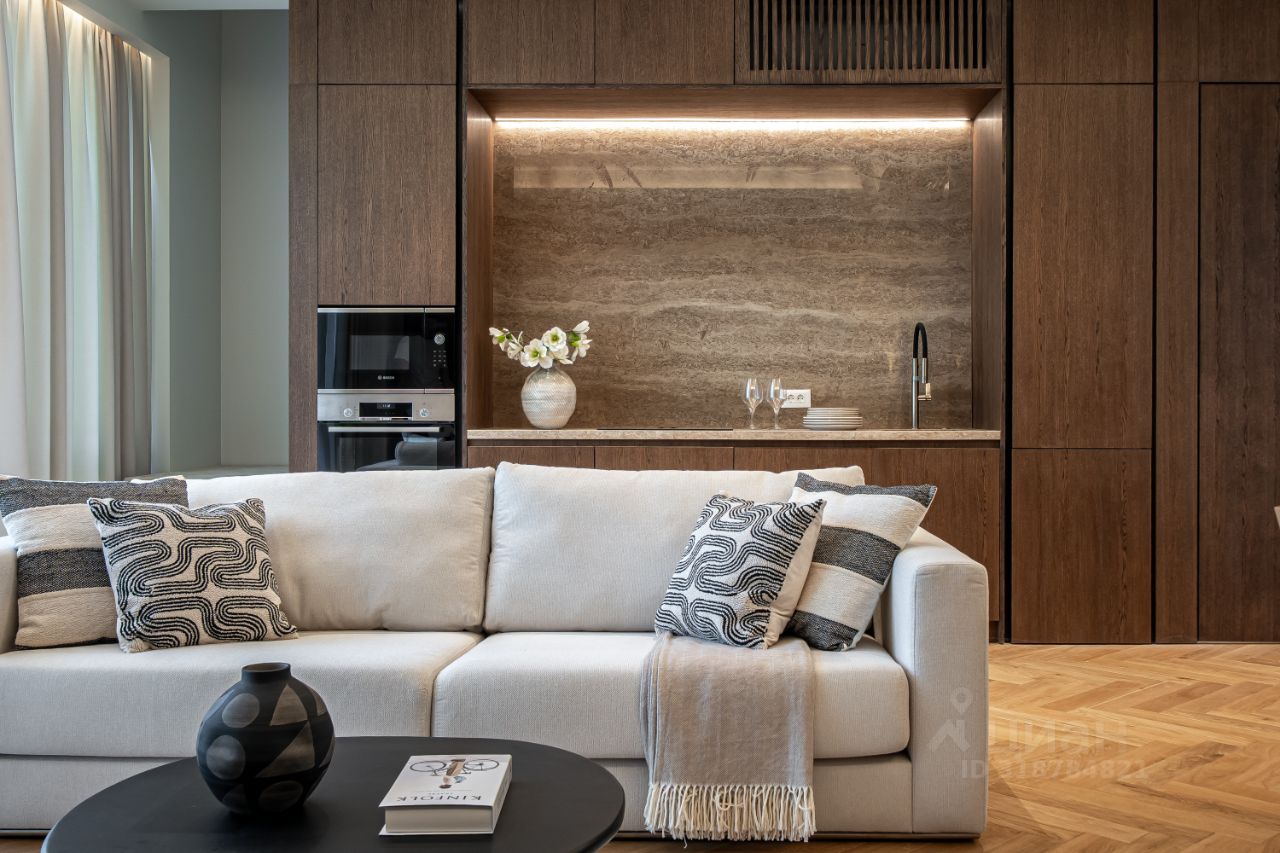 •    в отделке использованы исключительно натуральные экологичные материалы: натуральный камень - травертин и натуральное дерево - дуб,