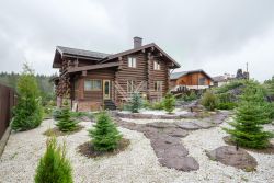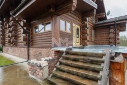 Особенности объекта: дом из бревна 40-60 см. канадской рубки с искусственным водопадом и камином, полноценный цокольный этаж, на участке выполнен ландшафтный дизайн.