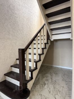 Дом 2 этажа, фундамент монолитная армированная плита, межэтажные перекрытия монолит, стены - газосиликатный блок 300, внутренняя отделка декоративная штукатурка, полы - плитка , ламинат, потолки натяжные, лестница деревянная красивая.