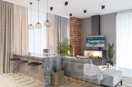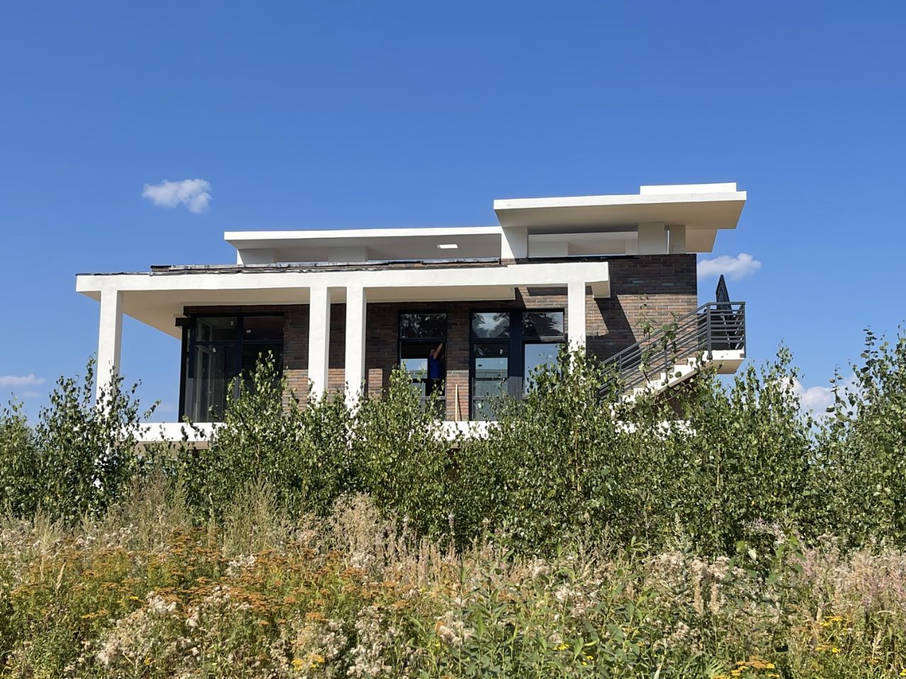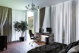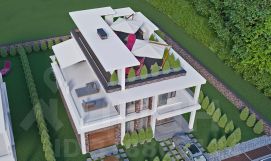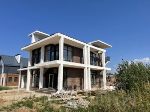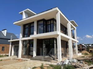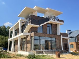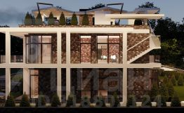 Коттедж представляет собой 2-х этажное строение с эксплуатируемой кровлей с камином, террасами и теплым паркингом на два автомобиля. Проект выполнен в стиле средиземноморских итальянских вилл с панорамными окнами и свободной планировкой. Коттедж располагается на участке 6,26 сотки земли (можно увеличить до 12 соток).