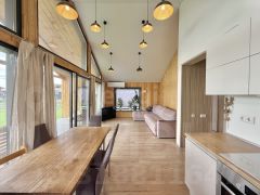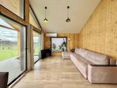 Жилой дом площадью 110 кв. м в амбарном стиле расположен на ухоженном участке 15 соток с продуманной инфраструктурой. Участок ровный, сухой, с аккуратным газоном, плодовыми деревьями, клубничной плантацией с капельным поливом и просторной теплицей. Парковка на две машины выложена брусчаткой. Дом построен по каркасной технологии на железобетонных сваях, с усиленным утеплением: стены 250 мм, пол и крыша 300 мм, что обеспечивает комфортный микроклимат в любое время года.
