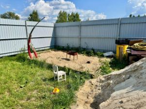 - Откатные ворота, бетонная площадка на 2 автомобиля