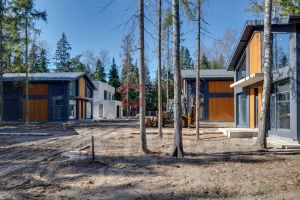 Поселок расположен в лесном массиве, шума от дороги нет. В 10 минутах на машине расположены магазины, салоны красоты, аптеки, фитнес, торговый центр. Несколько школ в 3-5 минутах езды на машине.