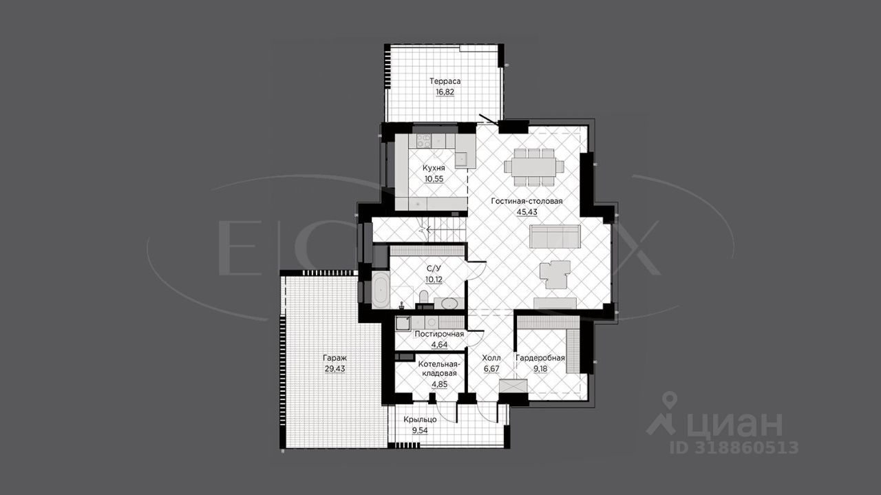 Продается дом в элитном коттеджном поселке ELI на участке 10 сот. Общая площадь всех этажей составляет 260 м2. Просторная планировка включает: