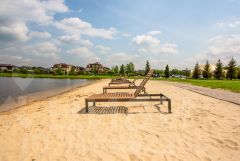 * Озеро с пляжем.
