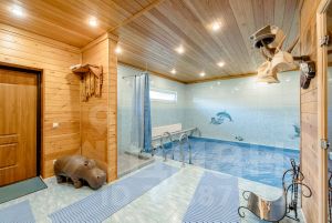 УЧАСТОК: На участке 9,1 сот расположено следующие объекты: двухэтажный дом, баня с бассейном, отапливаемый хозяйственный блок, навес для авто и беседка. Баня 6*10,с отапливаемым бассейном с противотоком (6*4м), русской баней с закрытой каменкой, комнатой отдыха, санузлом, технической комнатой и кинотеатром. На участке выведен летний душ, есть беседка с подведенными коммуникациями. Крытая парковка на 4 машиноместа.