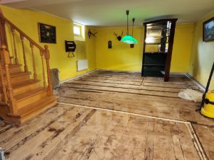 На цокольном этаже котельная, санузел, спортивный зал и большая гостиная, используемая в качестве биллиардной. Требуется ремонт.