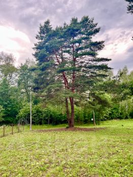 Продается чудесный ровный участок с огромными соснами и березами по периметру.