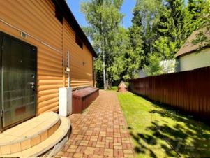 На участке за домом колодец 22 кольца с питьевой водой (проводили анализ) (вода подаётся в дом и баню), площадка с тротуарной плиткой, мангальная зона, баня, крытая дровница, туи, берёзы, сосны, газон, живая изгородь из кизильника. Весь участок ровный, сухой, подтоплений не бывает.