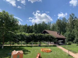 Усадьба расположена на ухоженном участке с ландшафтным дизайном.