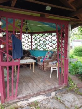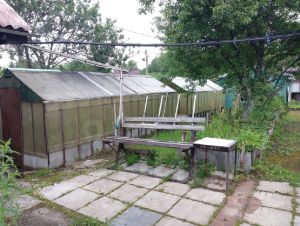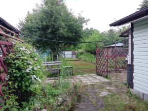 Участок огорожен, есть баня, гараж,туалет, душ и беседка с зоной барбекю. Во дворе имеется парковка для автомобиля .Хороший ровный сухой участок с множеством плодовых и декоративных насаждений.