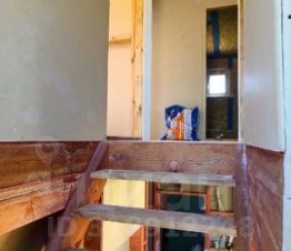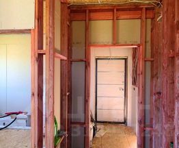 Все внутренние перегородки обработаны огнебиозащитой. Стыки стен и пола промазаны обмазочной гидроизоляцией для предотвращения образования мостов холода. Стены и мансардный потолок отделаны ГКЛ под покраску.