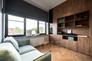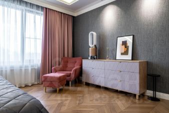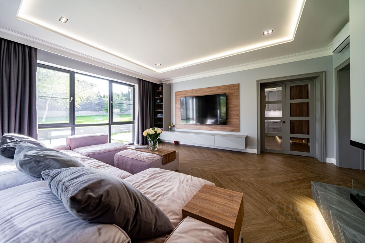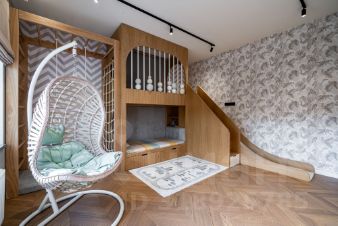 2 этаж: две мастер-спальни с гардеробными и ванными комнатами, кабинет, детская игровая комната, сделана по индивидуальному проекту с игровой зоной, детский санузел.