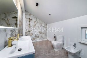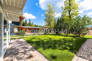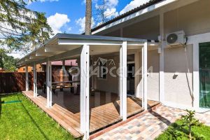 Участок полностью огорожен забором. Отмостка и дорожки выполнены из брусчатки. Есть ливневая канализация и система полива. Крытая терраса с мангальной зоной, крытая парковка на 2 а/м, хоз. блок, детский мини-городок.