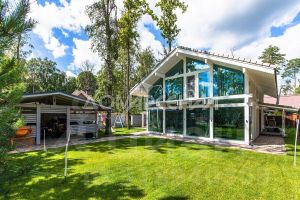 Светлый и просторный коттедж в стиле Фахверк. Год постройки: 2020. Современный гармоничный проект. В дома 4 спальни, холл, единое пространство кухни-гостиной-столовой 81,5 кв. м с выходом на крытую террасу. Панорамное остекление придает дому легкость и уникальность. Мастер-спальня с собственной гардеробной, с/у и выходом на балкон с видом на вековые дубы.