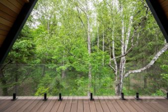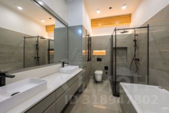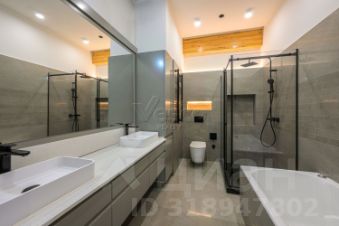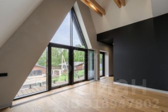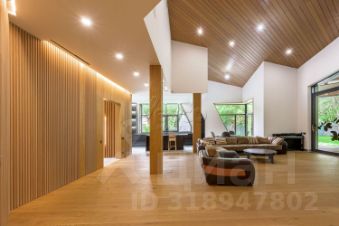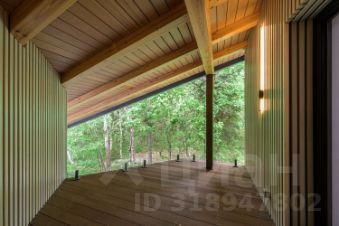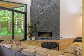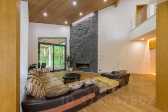 Особенности: модная архитектура, высокие потолки, панорамные окна, тихий угловой участок с калиткой в лес, террасы и балконы с видом на круглогодично зеленые деревья, барбекю-зона с дровяным камином на террасе, гостиная с камином и вторым светом, мастер-ванная отделена от спальни стеклянной перегородкой, натуральные экологичные материалы в интерьере (шпон дерева, каменный шпон, массив).
