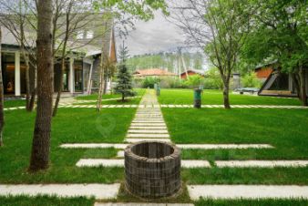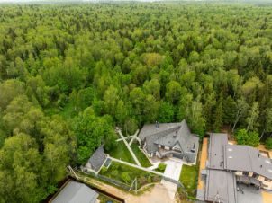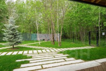 На участке - идеальный английский газон и пошаговые дорожки. Дополнительно можно оформить в аренду прилегающий лесной массив.