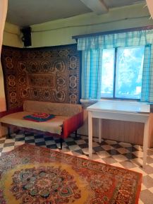 В доме есть гостинная-спальня, столовая, кухня, терраса. В нашем случае предполагается несколько спальных мест ( кровати и раскладные диваны)