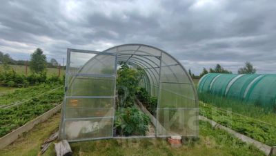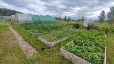 Участок большой, ровный, правильной прямоугольной формы с небольшим ответвлением для въездной группы и автостоянки. Обеспечен удобный подъезд в любое время года, огорожен забором, есть калитка и распашные ворота. Есть второй выход в сторону муниципальной дороги и леса, через который можно привозить сыпучие и прочие грузы для огорода и стройки, а также напрямую выходить на прогулки в лес. На участке расположены теплицы, хозблок и дом.