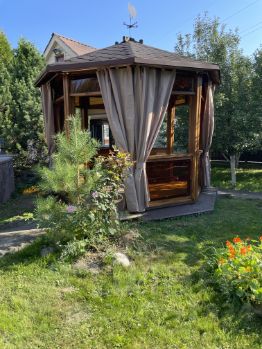 На участке есть отдельно стоящая баня (50 м2 деревянный сруб, отделка липа и ангарская сосна, отопление, холодное и горячее водоснабжение от дома), хоз. блок, беседка.