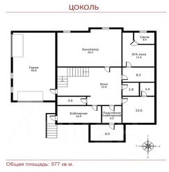 Цоколь: кинотеатр, котельная, постирочная, санузел, сауна, тренажерный зал, холодильная комната