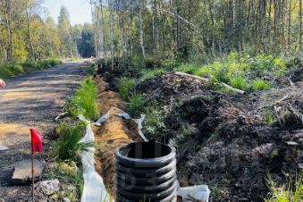В конце 2024 закончены дренажные работы на оба участка и еще несколько соседних. Несколькими соседями собственниками лесных участков. По договору работает проверенная подрядная организация. Разработанный проект учитывает особенности участков и выполняется поэтапно. Углублены ливневки, проложены трубы, отведен верхний слой подземной воды. На участках 107 и 108 сделана качественная дренажная система.