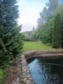 Участок правильной прямоугольной формы, прилесной. По документам 12 соток, по факту - 13,2. На участке высажено множество декоративных кустарников, хвойников, цветов. На участке есть живописный пруд (бетонная чаша) с системой фильтрации.