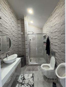 стены и пол в санузлах керамогранит (Италия); Двух контурный газовый котел (Мizudo 24) - работает отлично, на всякий случай установлен электрический двух контурный котел (Proterm 14); Бойлер для горячей воды косвенного нагрева 100 литров; Электрический шкаф, разводка на каждый этаж, каждое помещение своя: отдельно розетки, отдельно свет. Вся проводка из качественного провода, кухонная проводка из более мощного повода; Натяжные потолки полотно (Германия);