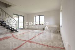 1 этаж: просторная кухня-гостиная с выходом на террасу, холл, 3 комнаты, 2 санузла, бойлерная (установлен котел), терраса. Потолки 2,8 м. По всему первому этажу теплые полы.