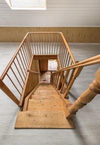 6 комнат: 3 спальни, каминная, кухня, передняя. А так же второй этаж и терасса.