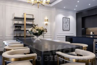 Кухня-столовая: стильное пространство с современным кухонным островом, оборудованным техникой Miele, станет местом для создания кулинарных шедевров и семейных ужинов.
